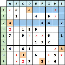 9 bij 9 Sudoku met 4 extra groepen (1 + 2 = 3)