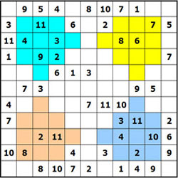 11 bij 11 Sudoku’s met 4 extra groepen
