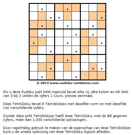 De TetrisDoku is een Sudoku variant waarin een aantal Tetrisblokjes met of zonder een aantal gegeven Sudoku cijfers, in de Sudoku moet worden ingepast als puzzelstukjes, waardoor, met de reeds gegeven cijfers, een unieke oplossing van de Sudoku wordt verkregen.