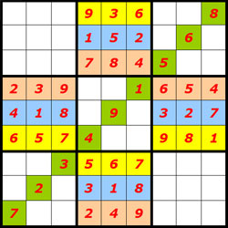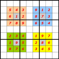Een Afhankelijkheids Doku is een uitdagende Sudoku variant waarbij twee of meer Sudoku’s geheel of gedeeltelijk afhankelijk van elkaar zijn om allen uniek te kunnen worden opgelost.